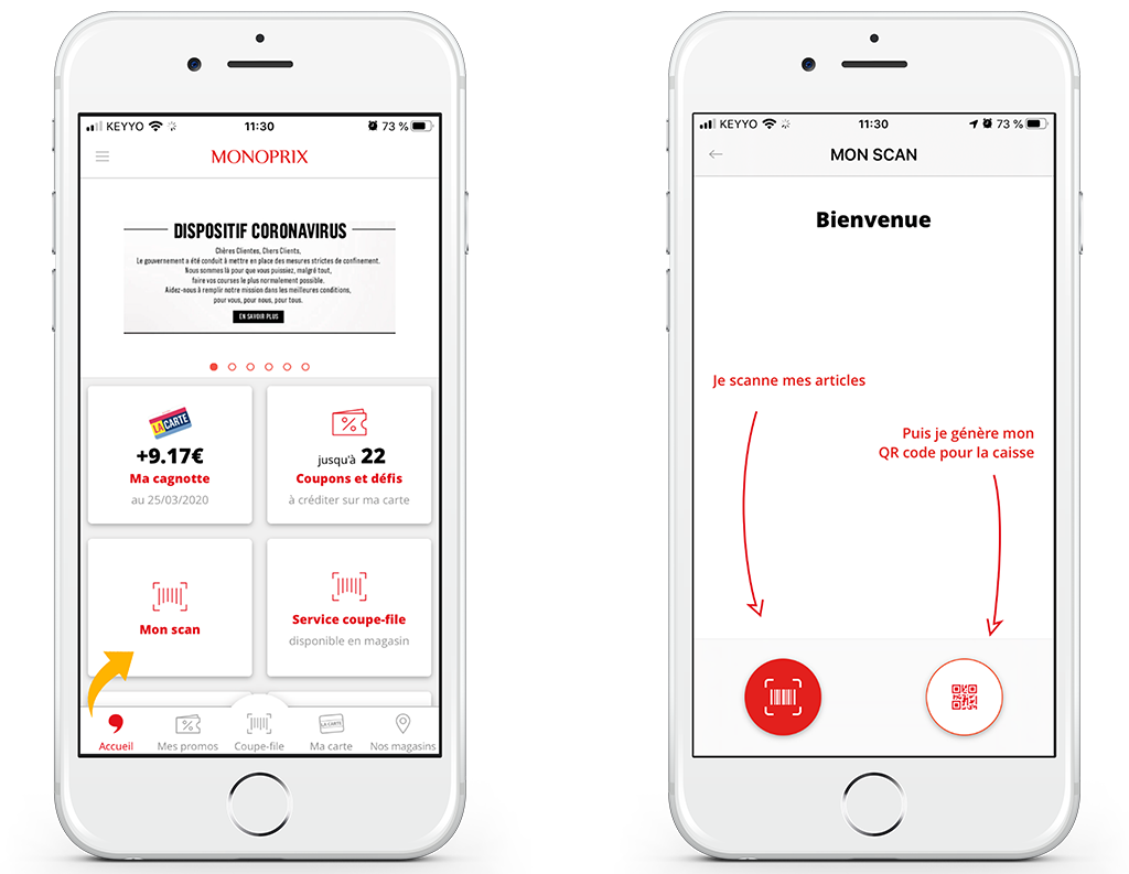 En réponse à la lutte contre le #coronavirus et en moins d’une semaine, Monoprix accompagné par nos équipes de développeurs, ont lancé le service Mon Scan’.