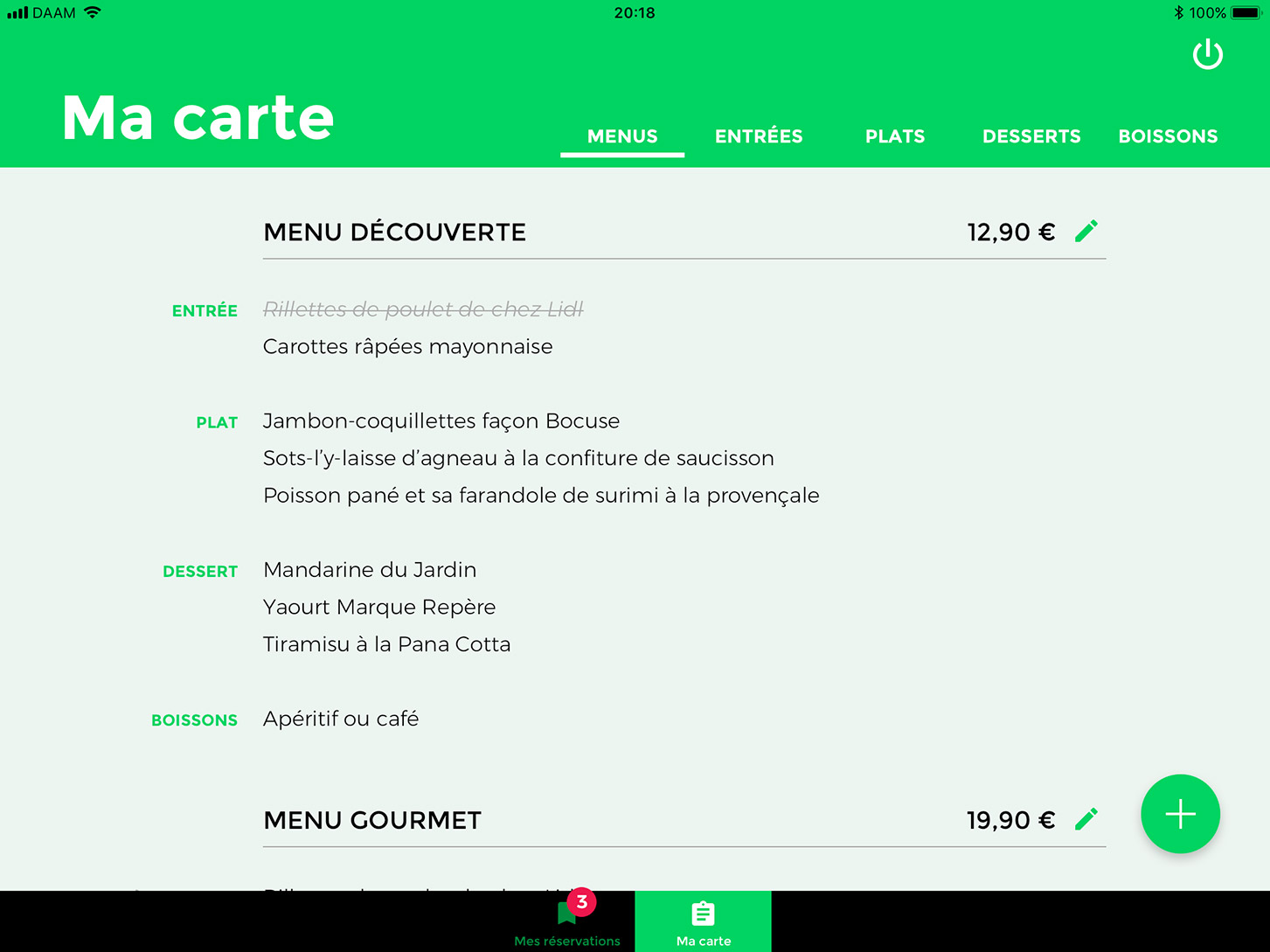 Afin de répondre aux besoins des professionnels de la restauration, notre équipe a imaginé une solution tablette. Elle leur permet de gérer leur carte des menus, les commandes et les réservations plus simplement grâce à un dashboard. En utilisant cette solution, les professionnels pourront avant tout optimiser leur service, mais aussi diversifier leur clientèle et améliorer leur visibilité.