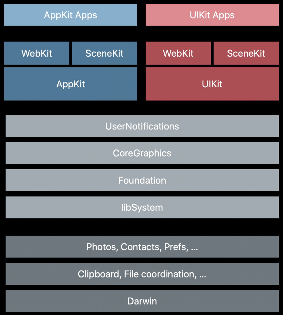 Permet de « recompiler des applications iPad pour les exécuter nativement sur Mac« . Apple a unifié autant que possible toutes les couches de frameworks entre iOS et MacOS (à quelques exceptions prêts comme ARKit qui n’existe pas sur Mac).